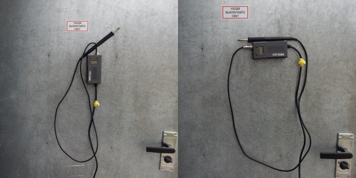 В отличие от моего старого паяльника, ручка нового не нагревается и поэтому держать ее комфортно и удобно. Вылет жала минимальный, что хорошо для пайки мелких деталей.