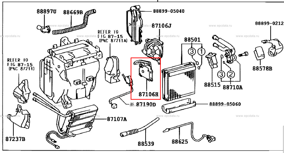 По схеме в каталоге не понятно 1, 2 или 3 (смотри под бардачком и за магнитолой) должно быть одна заслонка циркуляция салон улица 2-я регулирует тепло и 3 положения куда дуть (ноги в лицо или стекло), это в 12# кузове Каролла?