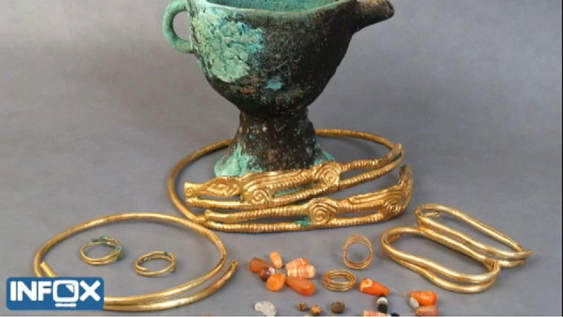 Удивила археологов и другая находка — деревянная чаша, обложенная по краю золотыми пластинками. «Дело в том, что до настоящего времени в сарматской археологии существовало представление, что деревянные сосуды, обложенные золотом, появились где-то на рубеже V-IV вв. до н. э., то есть с началом раннесарматского времени. А мы нашли погребение, которое датируется VII-- началом VI века», — пояснил Таиров.