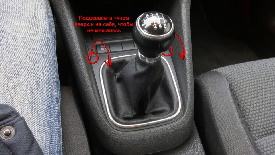 Снимаем крышку рычага КПП. Для этого ее поддевает в передней части и аккуратно тянем на себя и вверх.
