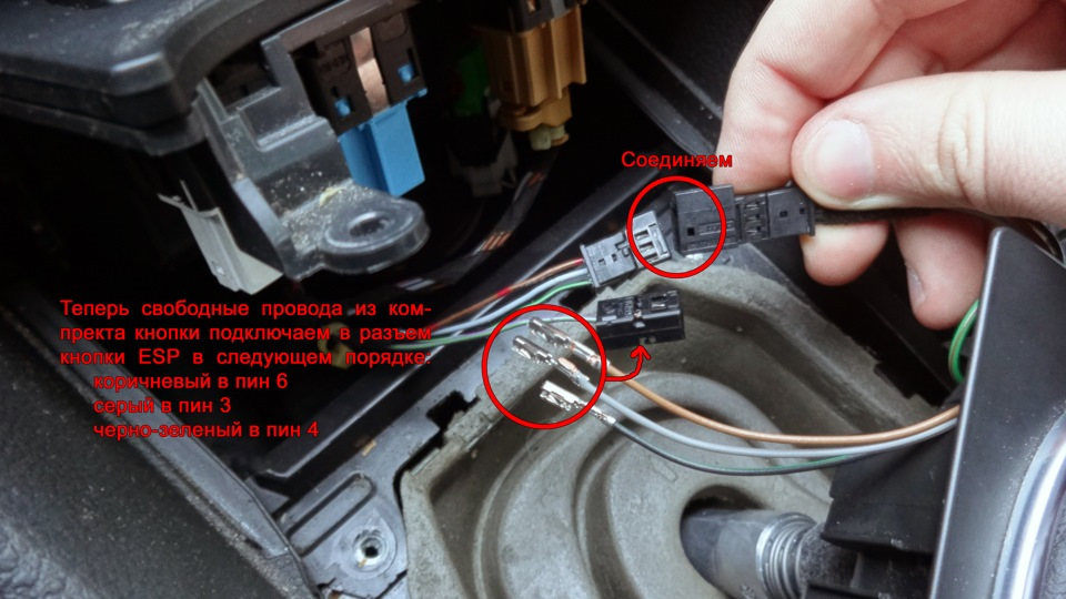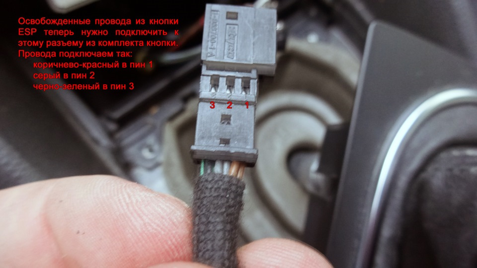 Освобожденные провода из разъема кнопки ESP теперь нужно подключить в разъем-переходник из комплекта кнопки SET в следующей последовательности (пин ESP → пин переходника): 6 → 1; 3 → 2; 4 → 3.