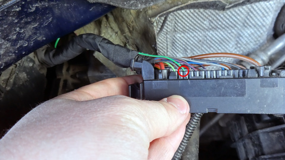 Теперь нужно снять разъем блока ABS, для чего тянем фиксатор вверх.Сняв разъем, ищем нужный пин. Для автомобилей с ESP и МКПП — 41 (мой случай), для автомобилей с ESP и АКПП — 27, для автомобилей с ASR — 7.
