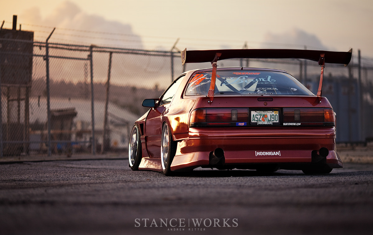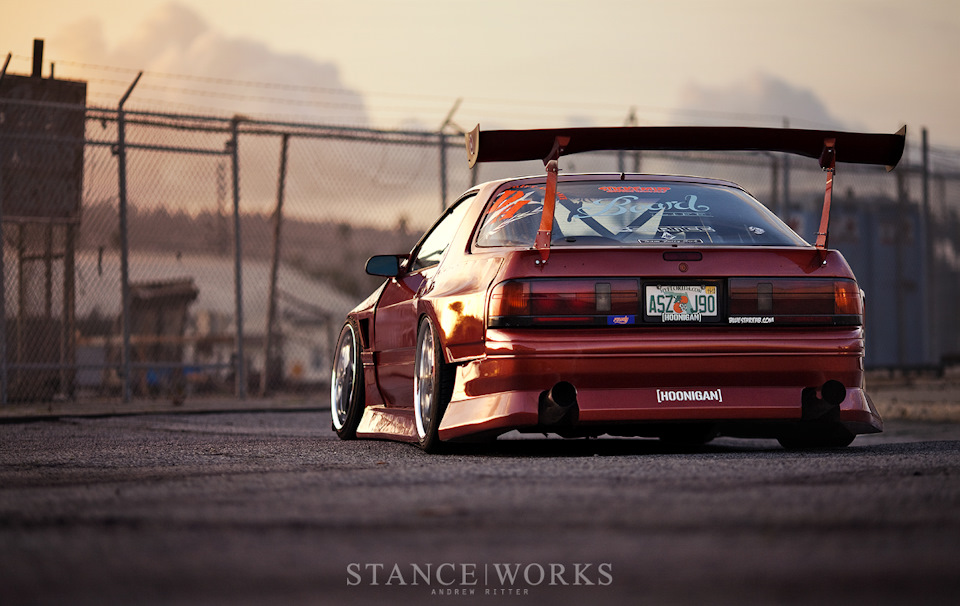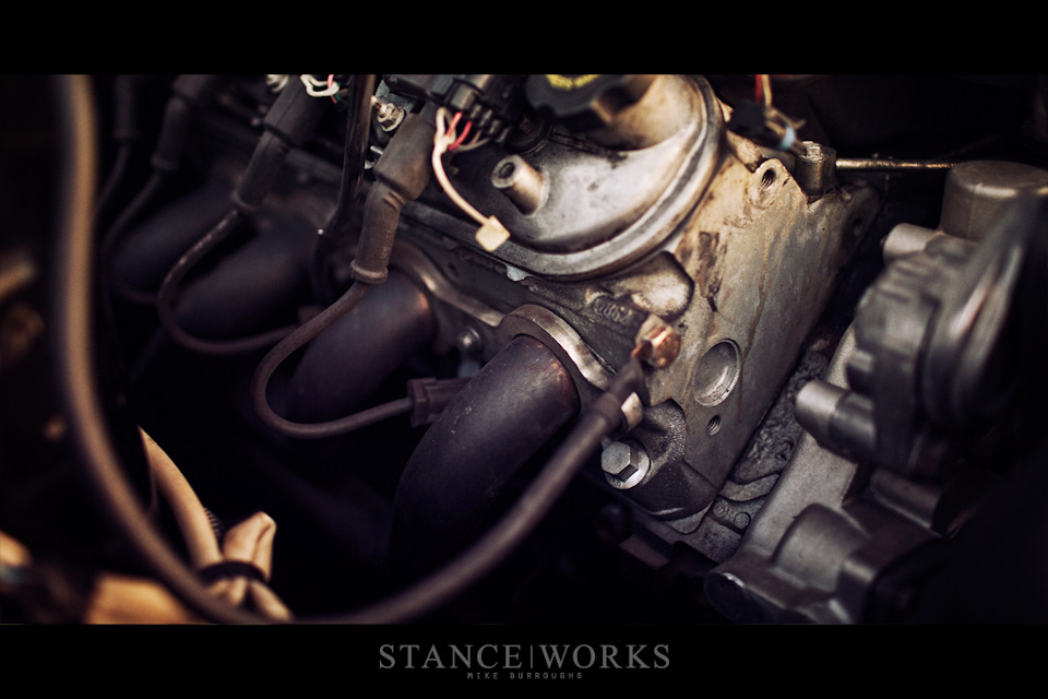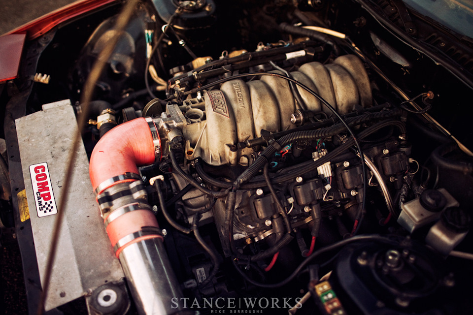 Теперь все что нужно было сделать, это поставить новый двигатель и немного заточить под дрифт. Т.к под свап V8 уже было все подготовлено предыдущим владельцем, Хэрт приобрел 5.3 литровый движок от 2000 Chevy Silverado, отправившегося на свалку. Двигатель был оснащен необходимыми LS аксессуарами, выпускным коллектором Fast 78, распредвалами Comp и клапанными пружинами Beehive. Дифференциал Tomei 2-way передавал крутящий момент от трансмиссии Т56, способной выдавать около 1000 л.с на усиленную полуось Drive Shaft Shop.