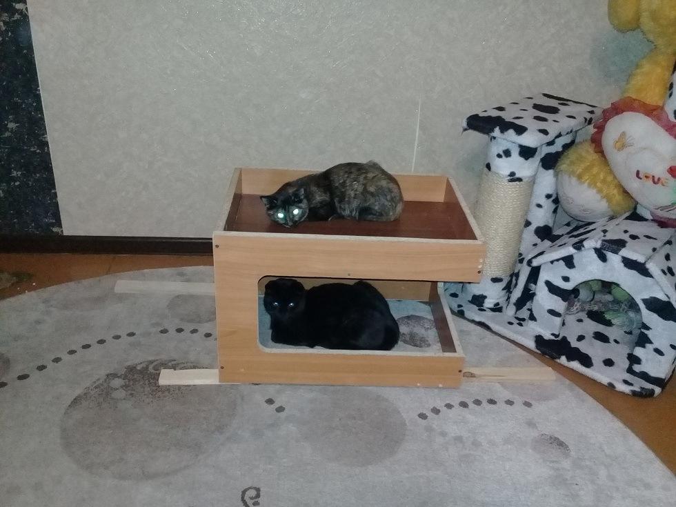 А то б у каждого своя хатка была б! Я думаю они ещё замышляют злобные планы. Это ж коты.