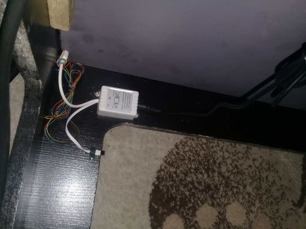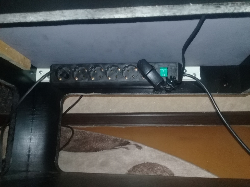 Была мысль запихать туда литий и ДС-ДСишку, но мне это ненужно, так-как у меня столик под телевизором для приставов. А их один фиг подключать. По этому я решил сделать на оборот, пускай всё в столик включается. И лишних проводов не торчит.