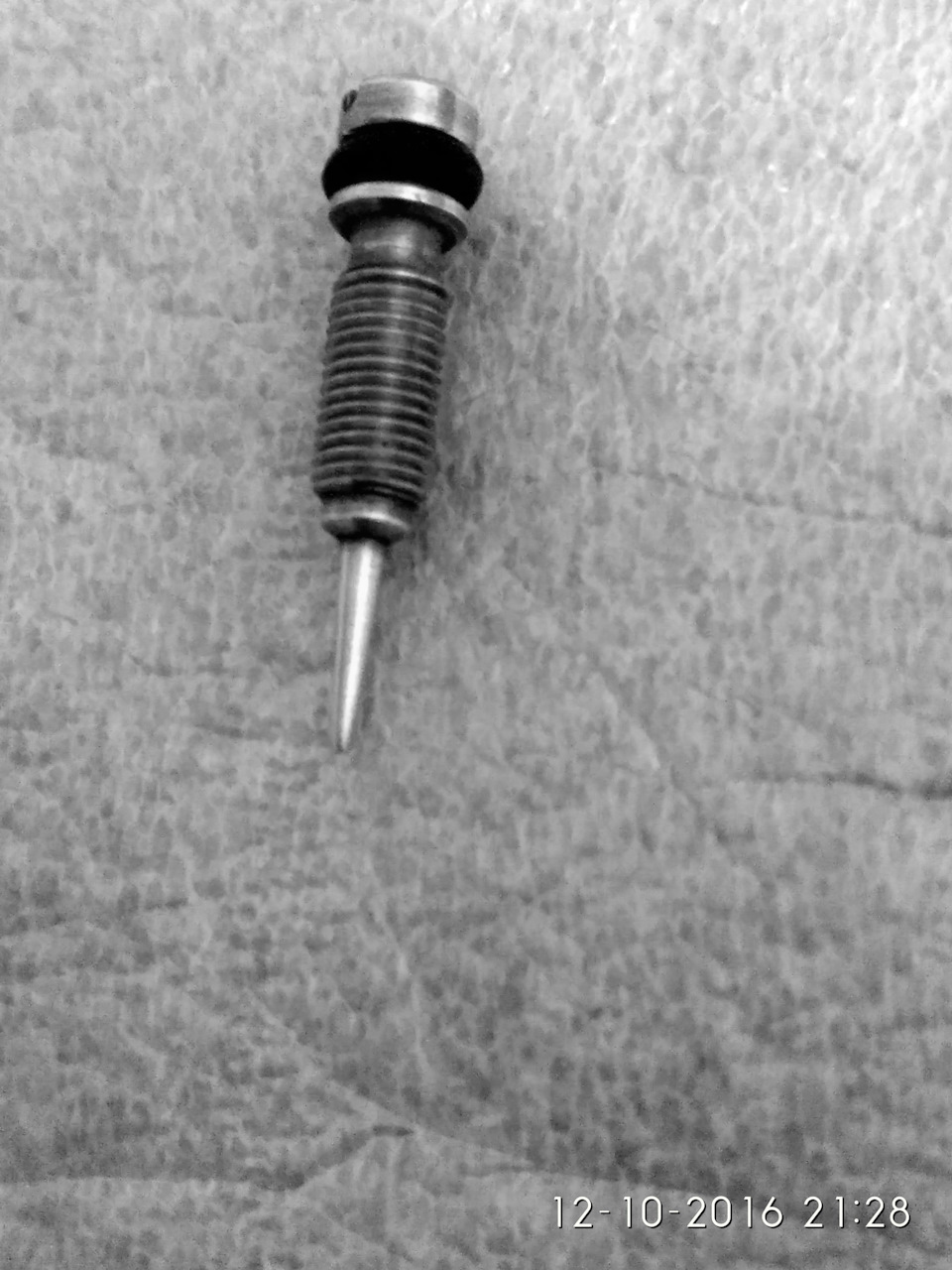 Обработал конус винта алмазным надфилем, а затем мелкой (800) шкуркой зашлифовал для снятия неровностей после надфиля и придания округлости. Работать надо аккуратно, нужно получить правильный конус с более острой вершиной, основание конуса не трогать, вершину до состояния иглы не доводить.