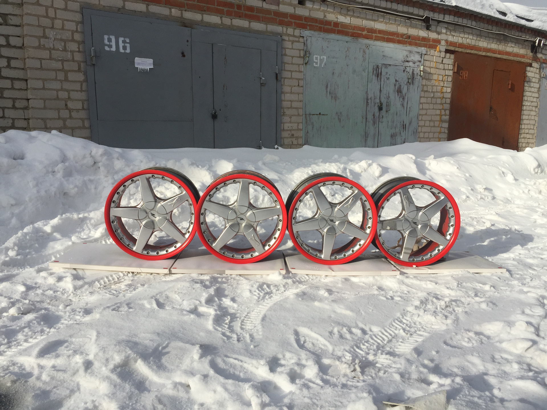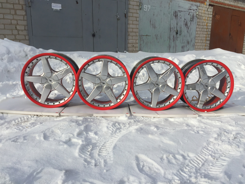 покраска обода в красный очень даже ничего смотрится, и оживляет восприятие дисков, в серебристом тоне совсем все теряется