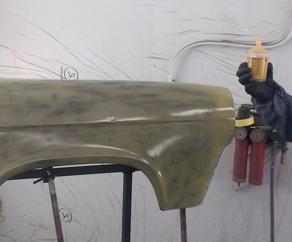 Между грунтованием и нанесением эмали менять размер сопла на краскопульте обычно не нужно, потому что грунтовка, подходящая для подобных операций, должна иметь меньшую плотность и размер наполнителя. Т.е. грунт и краска просто напыляются слой за слоем. В идеальных условиях ничего другого делать не нужно, однако существует способ немного подстраховаться: нанести на металл тонкий слой эпоксидного грунта и только на него хороший грунт-наполнитель или другой, подходящий по составу.
