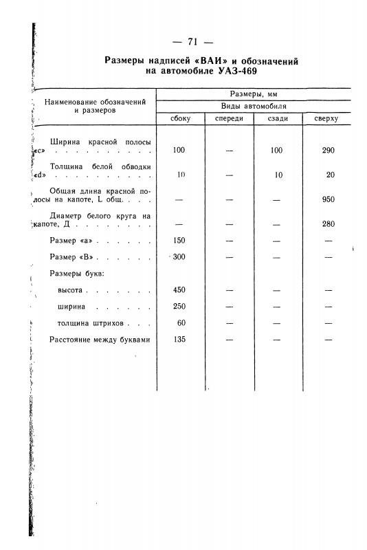 Надпись "ВОЕННАЯ АВТОИНСПЕКЦИЯ" наносится на боковые двери легковых и грузопассажирских автомобилей, маломестных автобусов, а также задние части грузопассажирских автомобилей и маломестных автобусов; надпись "ВАИ" – на капот и крышку багажника легковых машин и на боковые двери кабины грузовых автомобилей. На передние боковые двери легковых автомобилей и маломестных автобусов ВАИ, под информационной надписью, допускается нанесение геральдического знака – эмблемы Вооруженных Сил Российской Федерации или иной структуры, которой данное подразделение ВАИ принадлежит: МЧС, МВД и т. п.