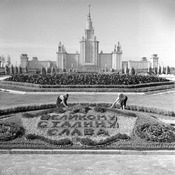 Торжественная церемония закладки первого камня высотного здания МГУ состоялась 12 апреля 1949 года, ровно за 12 лет до полета Гагарина.