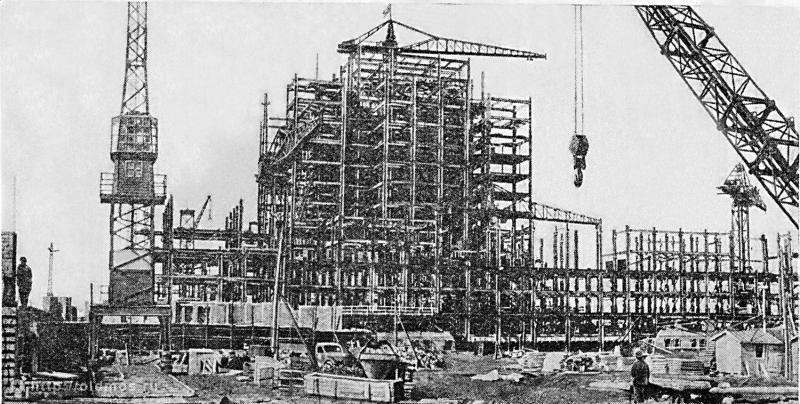 Каркасная система позволила свести роль наружных стен к лишь оболочке, изолирующей внутреннее пространство здания от внешних температурных колебаний. Все нагрузки здания теперь передавались на каркас, представляющий собой систему балок и колонн, которые воспринимали вес здания и передавали его на фундамент. В основу советских методов проектирования стальных каркасов были положены труды выдающихся русских инженеров Н.А.Белелюбского, П.Я.Проскурякова, В.Г.Шухова и других, а позднее – Е.О.Патона, Б.Г.Галёркина, Н.С.Стрелецкого, создавших уже к началу ХХ века свою школу и рациональные конструктивные формы. Электросварка, изобретенная в России инженерами Н.Д.Славяновым и Н.И.Бенардосом в 80-е годы XIX столетия получила особенно широкое распространение после Октябрьской революции в различных областях промышленности и в том числе в строительстве. Успешное развитие сварочного дела дало возможность уверенно применить сварку и при монтаже стальных конструкций: каркасы всех высотных зданий в Москве были не только изготовлены, но и полностью смонтированы на сварке. Сварная конструкция, впервые примененная в Советском Союзе для высотного строительства, имела ряд преимуществ перед существовавшей в мировой практике конструкцией с монтажными соединениями на заклепках – снижение веса, снижение трудоемкости изготовления элементов и снижение трудоемкости монтажа.