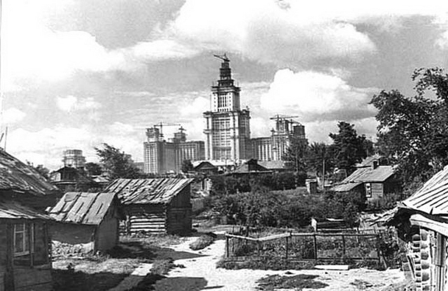 В системе ГУЛАГа существовало «Строительство-560», преобразованное в 1952-м в Управление ИТЛ Особого района (так называемый «Стройлаг»), контингент которого занимался сооружением университетской высотки. Начальником этого «гулаговского острова» был сперва полковник Хархардин, а после него – полковник Смирнов и майор Архангельский. Курировал стройку лично генерал Комаровский, начальник Главного управления лагерей промышленного строительства. Численность заключенных в «Стройлаге» достигала 14290 человек. Практически все они сидели по «бытовым» статьям, «политических» везти в Москву побоялись. Зону со сторожевыми вышками и колючей проволокой построили в нескольких километрах от «объекта», рядом с деревней Раменки, в районе нынешнего Мичуринского проспекта.