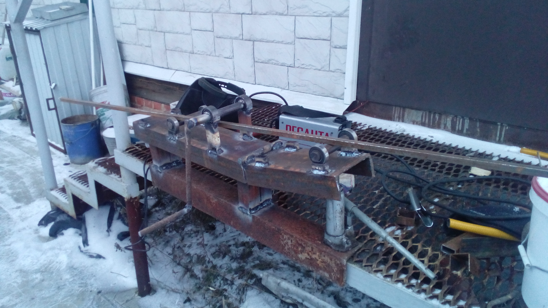 спасибо за развернутый ответ.Я сразу не заметил, что вокруг средних подшипников труба, подумал, что они приварены, а потом рассмотрел подробнее)))А расстояние между стойками для подшипников у вас какое?(как я понял-высота боковых стоек 3 см, а средних-плюсуем ширину желаемой трубы), а вот как высчитать расстояние между стойками?Или это особой роли не играет в гибке трубы?