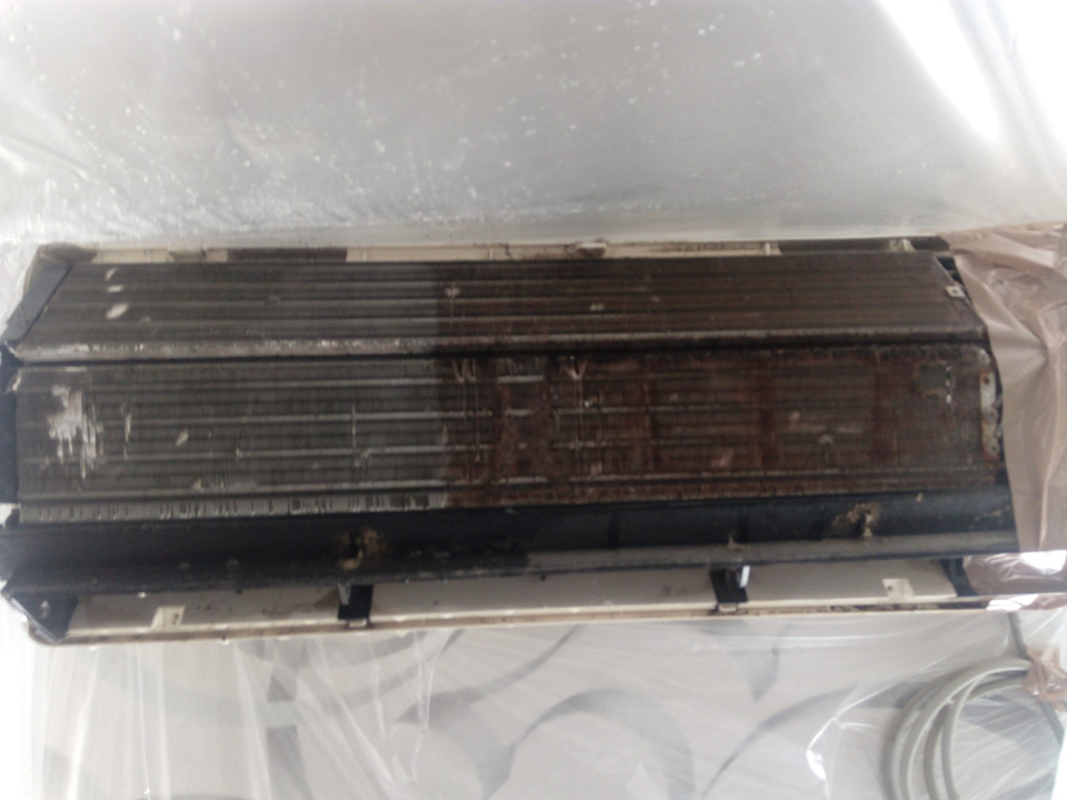 К стати, тоже самое касается и домашних сплит систем: прилагаю фото наглядного примера, только процес чистки сложнее, но химия таже. Моется внутренний блок с керхера, без демонтажа.