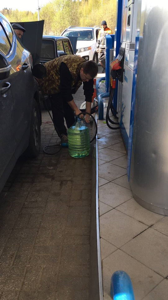 я так понял, он живет очень далеко от ближайшей заправки, что удается найти, тем и заправляется