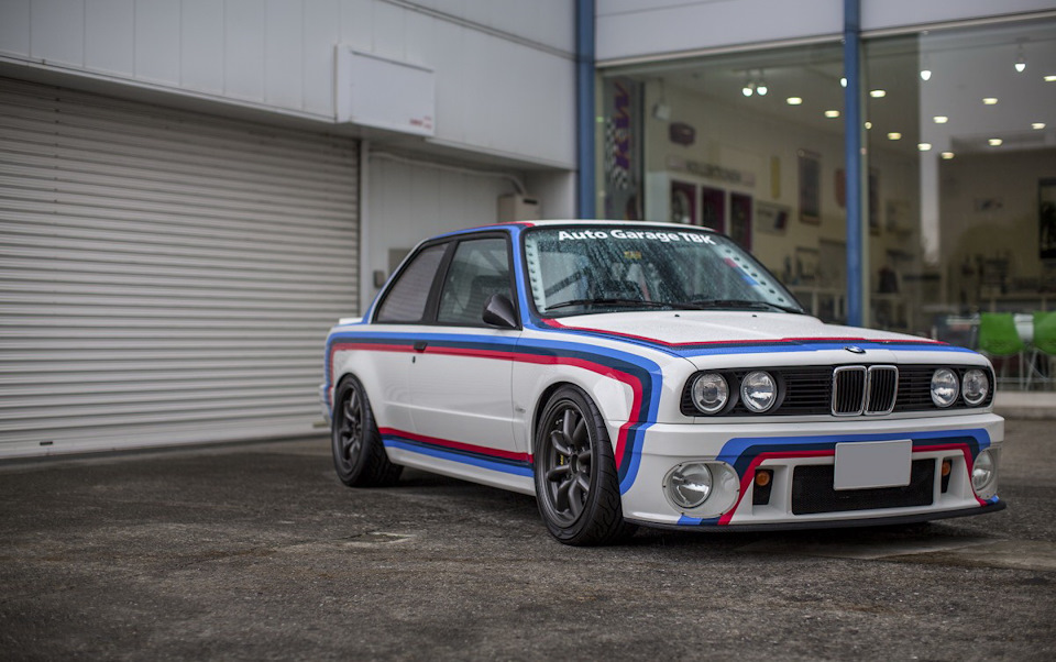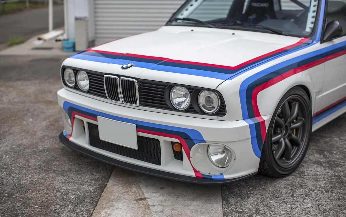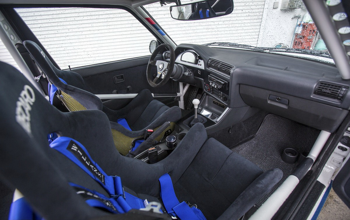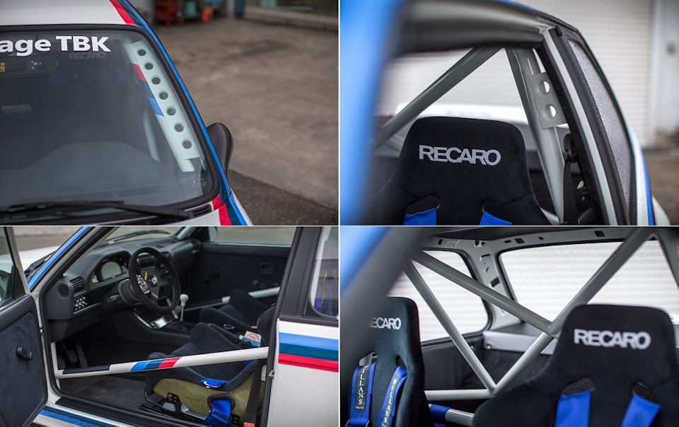 Стандартная конструкция 1988 года явно требовала вмешательства, так как ее состояние было далеко от идеала. Следующей на очереди стала установка профессионального каркаса по приложению J, в точном соответствии с инструкцией прописанной в регламенте FIA. Предвкушая установку широких колесных дисков, тюнеры благородно расширили передние и задние арки, придав устаревшему кузову Е30 немного агрессии и спортивного стиля. Самое время для покраски: белый матовый перламутр в сочетании с триколором BMW M-Power. Кажется, это сочетание цветов будет популярно у фанатов BMW во все времена