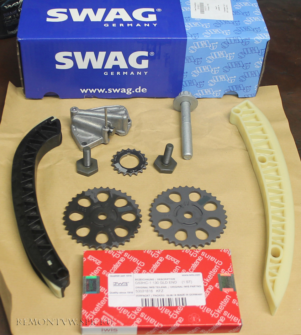 недавно был на заводе FEBI, своими глазами видел, что они упаковывают в свои коробки. Но там снимать было нельзя, а тут случилась оказия, приехала машинка с мотором 1,2 12V BME, и я для неё купил набор от SWAG (что тоже самое, что и FEBI). И уже его содержимое фотографировал в своё удовольствие:-)