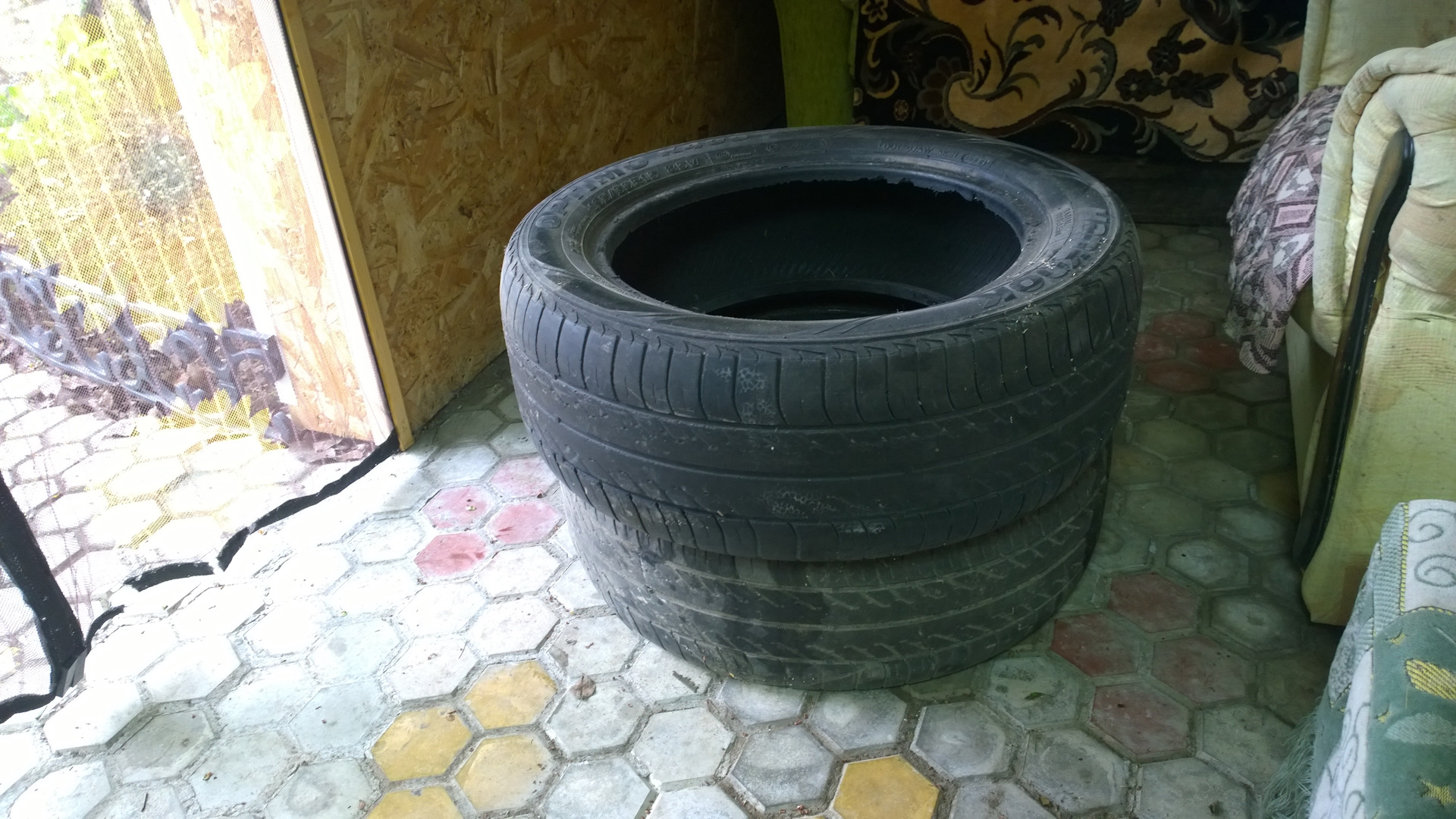 Поменял в этом году летние шины, а старые сразу жена прибрала на клумбы.