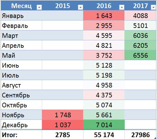 Ниже представлены продажи LADA Vesta по месяцам за 2015-2017 год.