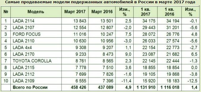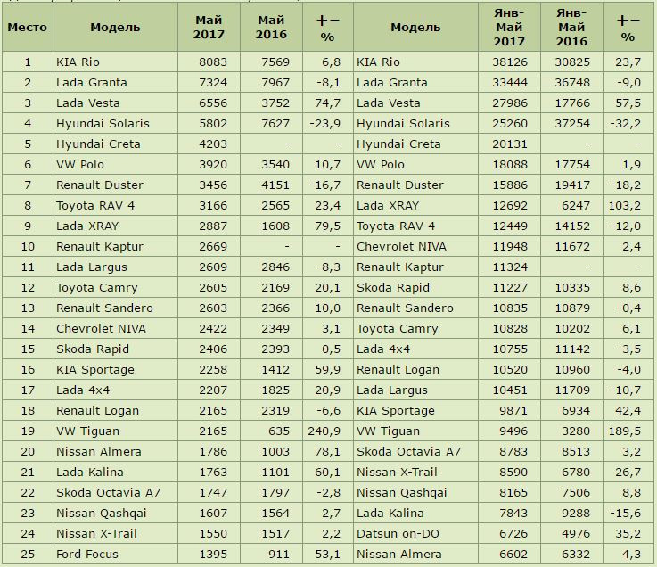 Самые продаваемые автомобили в России в мае 2017 года.