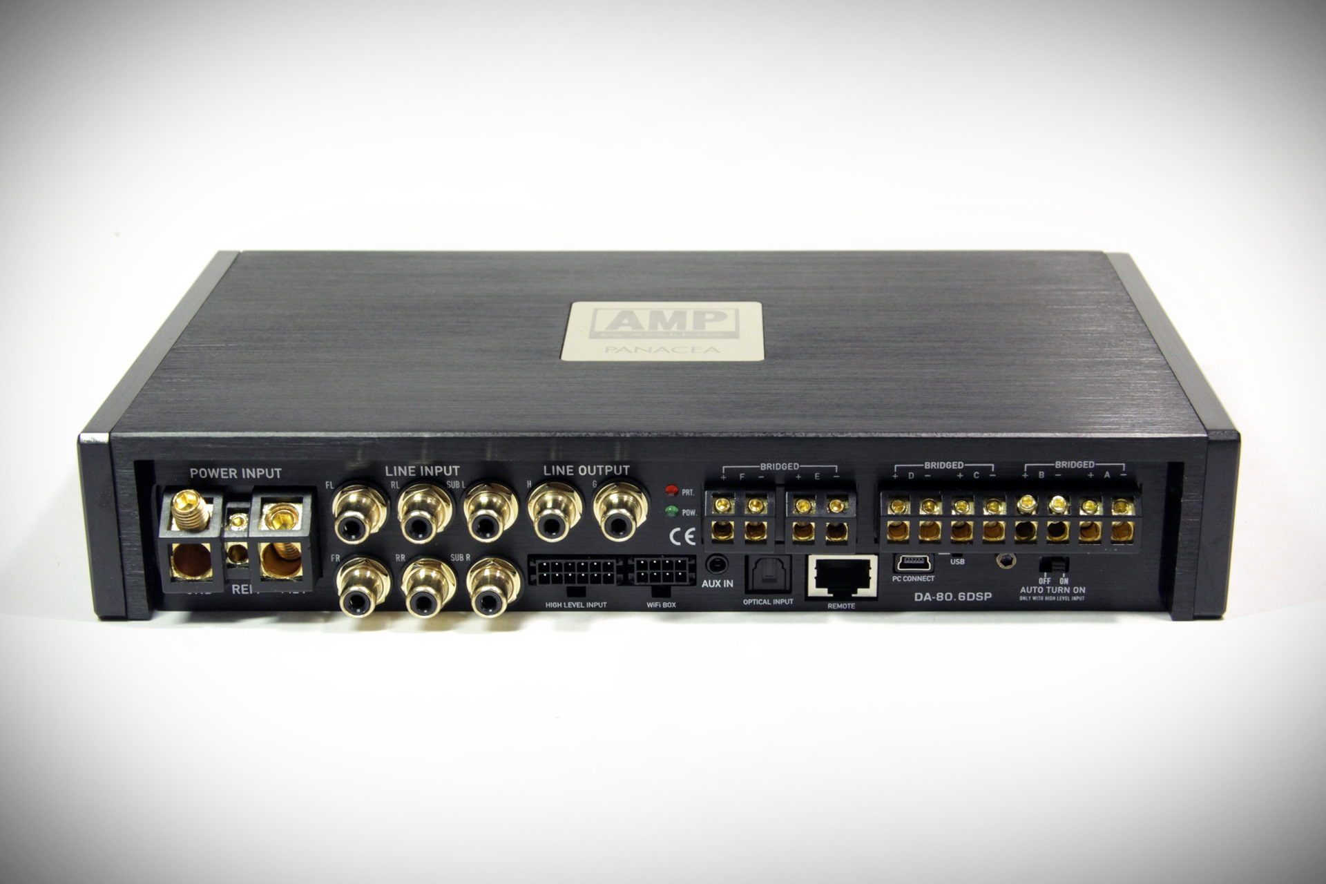 Сегодня на тестировании – первый усилитель дебютирующего на российском рынке бренда AMP. Это 6-канальная модель со встроенным 8-канальным процессором. Начать именно с такой конфигурации – логичное и разумное решение, ведь получается, что DA-80.6DSP имеет всё, чтобы разом покрыть все потребности при построении большинства аудиосистем. Так что название серии Panacea, похоже, взято не просто так.