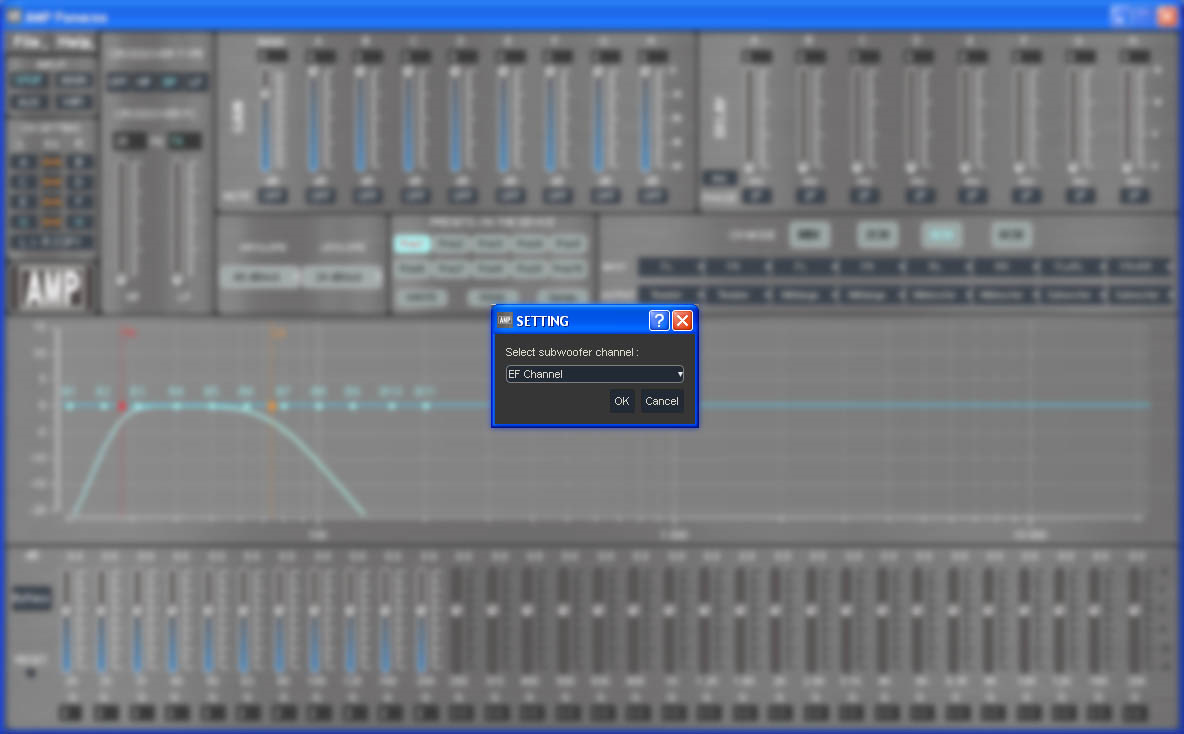 На сабвуфер можно определить как "дополнительные" каналы G и H, к которым подключается отдельный усилитель, так и каналы встроенного усилителя E и F. Это нужно указать в программе, чтобы пульт регулировал уровень саба в нужных каналах.