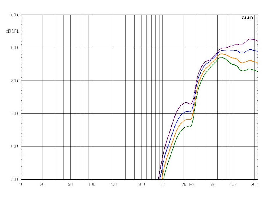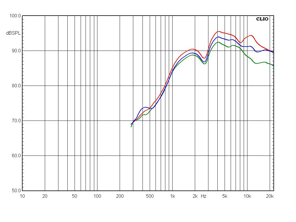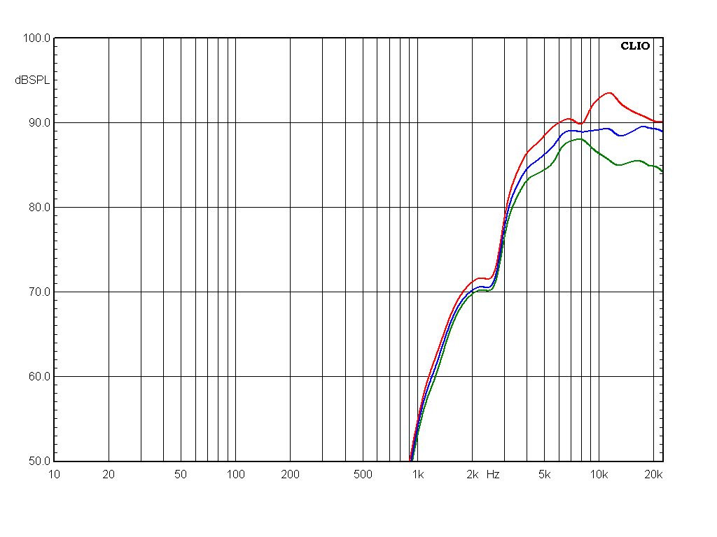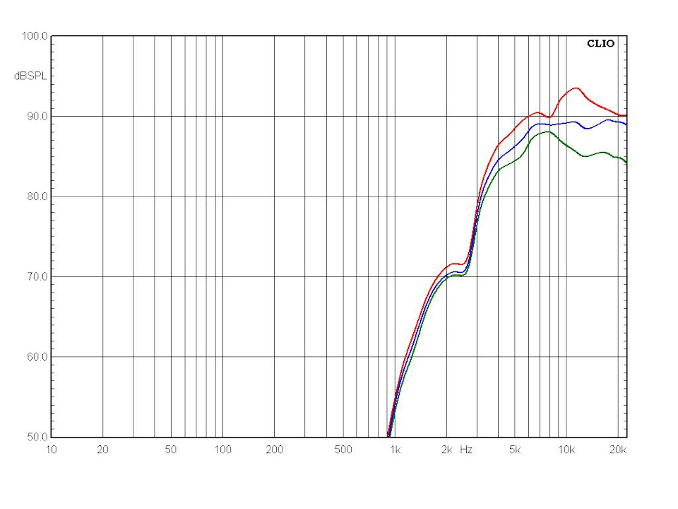 По этой причине я немного нарушил традицию и проверил работу переключателя уровня ВЧ, измерив АЧХ как раз под углом 30 градусов. Обратите внимание, при перестановке джампера меняется не только общий уровень твитера, но и наклон АЧХ выше 7 кГц: