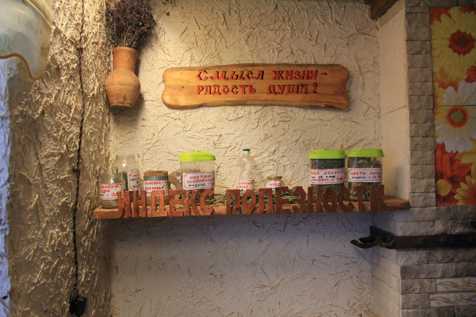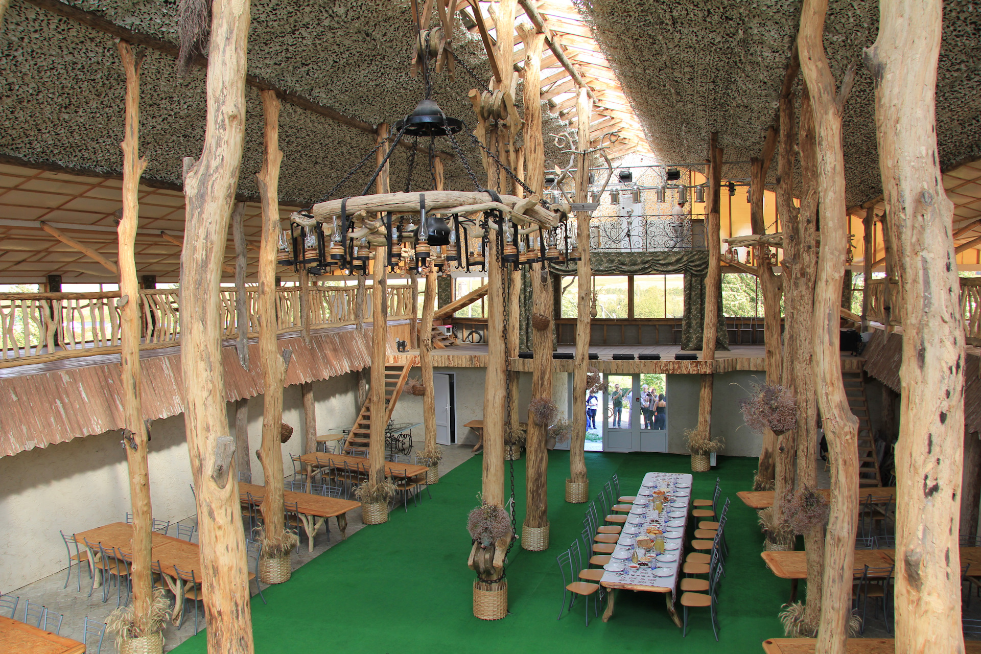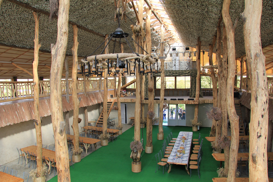 Это обеденный зал где всё готовят исключительно из местных продуктов, + квас и местные горячительные напитки. На противоположной стороне сцена, и над ней наблюдательная площадка (виден даже стоящий телескоп)