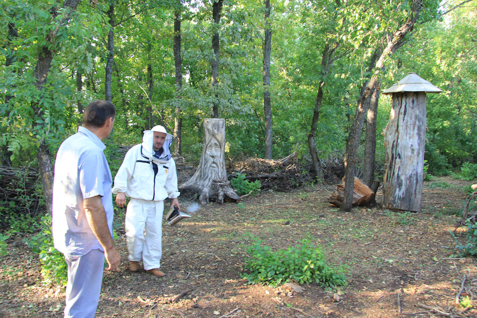 А далее через подвесной мост мы посетили пасеку с дикими пчелами. Ульи сделаны (некоторые перенесены) из толстых деревьев, внутри пустые. Говорят что 150 кг меда можно набрать.