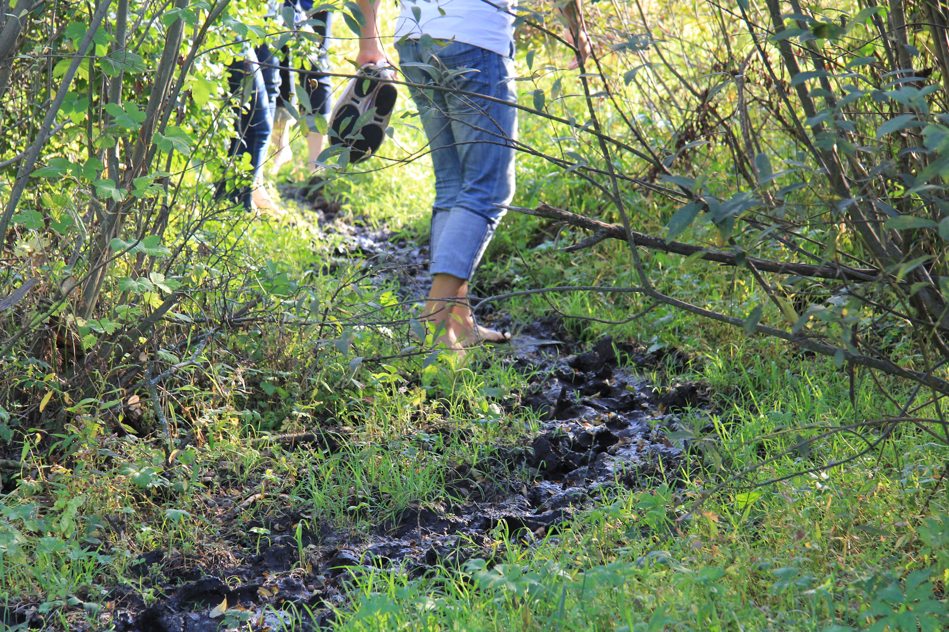 Ну и по желанию (а ни кто не отказался) нам предложили почувствовать тропу. = трава, грязь, 10 см воды…
