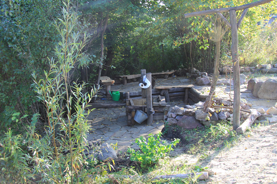 После подъема на другую сторону леса мы переместились к роднику, у которого построена беседка с грилем. (там кормят мясом предварительно договорившись)