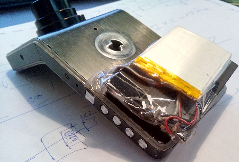 Я сделал проще — выковырял старый акумулятор и прилепил сверху первый попавшися от старой мобилы, после просто долепил еще один. Никаких проблем с перегревом у них теперь нет — пальцем трогаю теплые но не горячие. Однако я не оставляю его в машине когда ухожу, чревато разбитым стеклом и украденным регистратором.