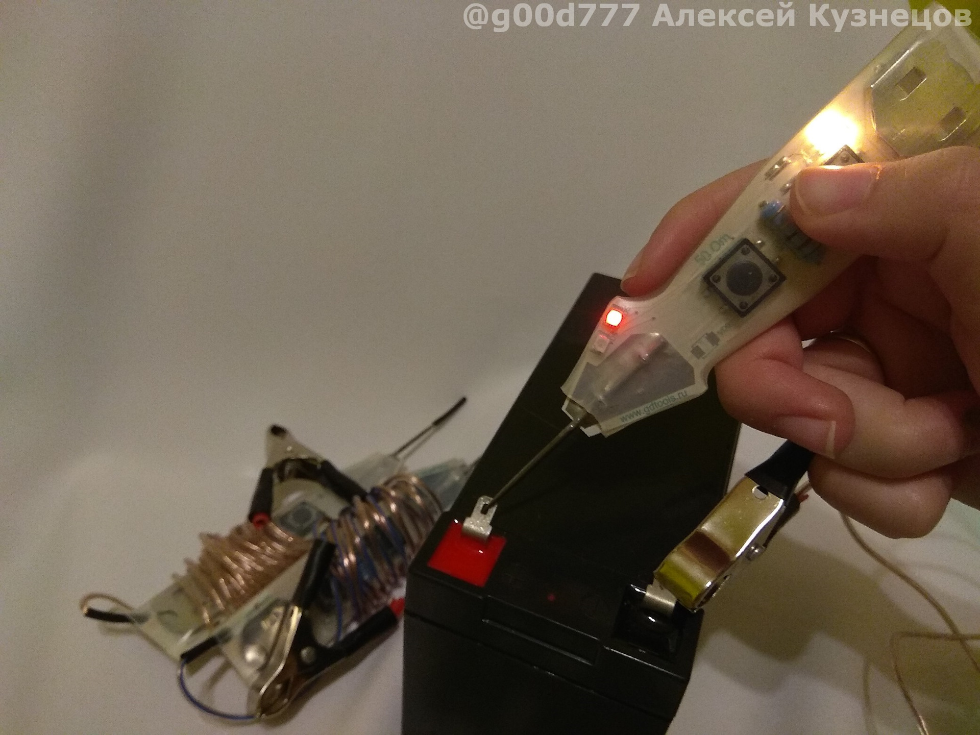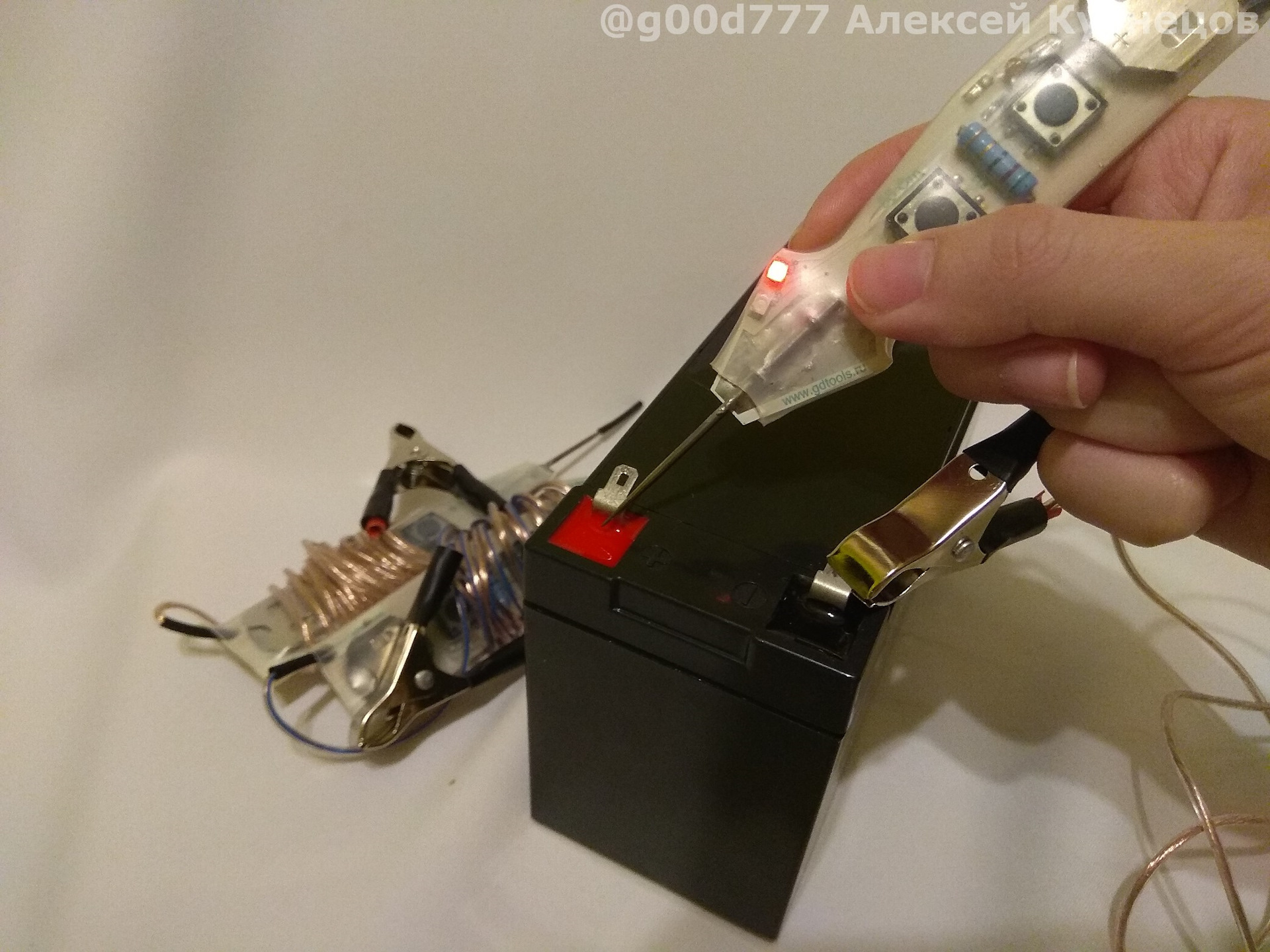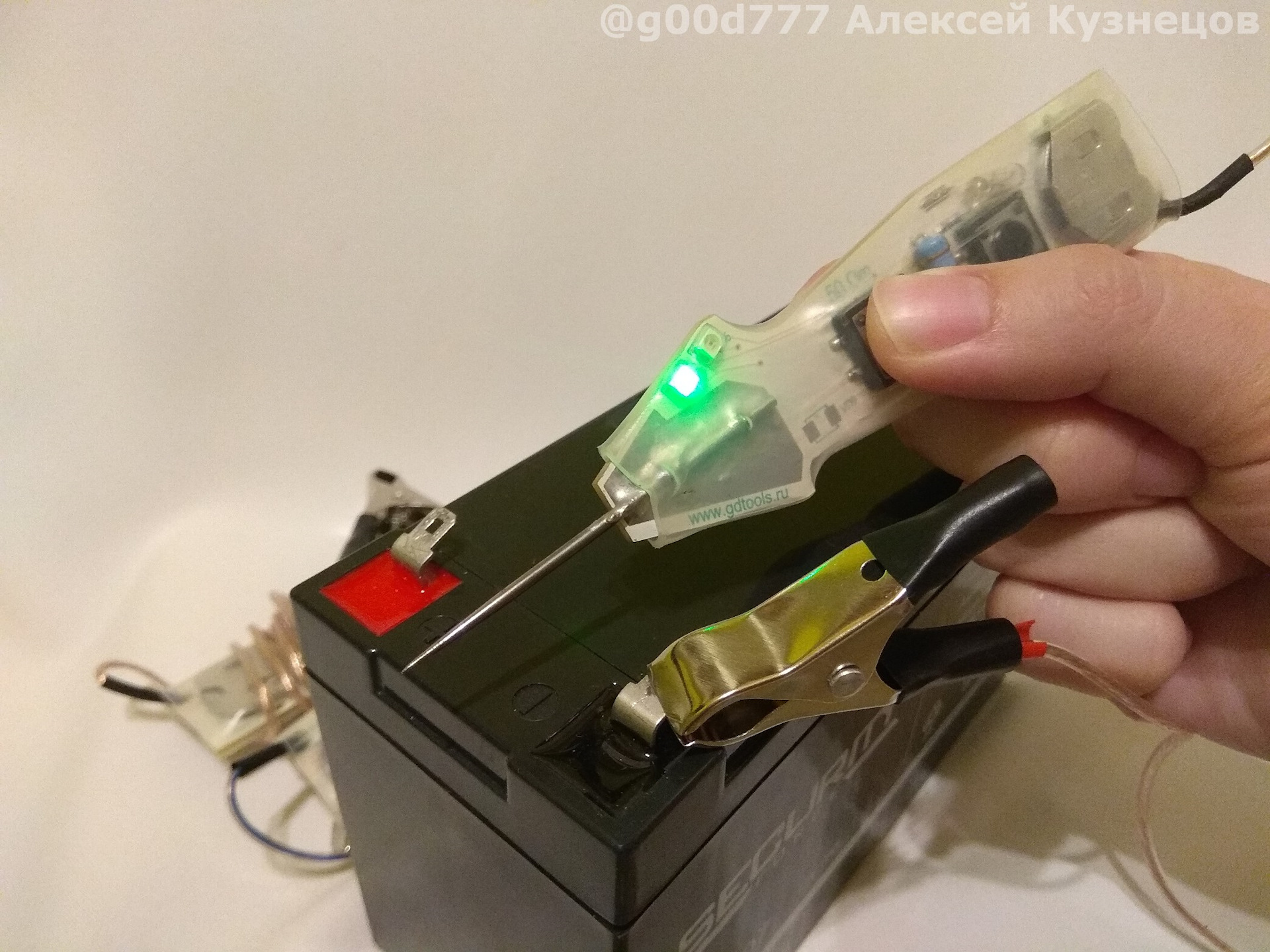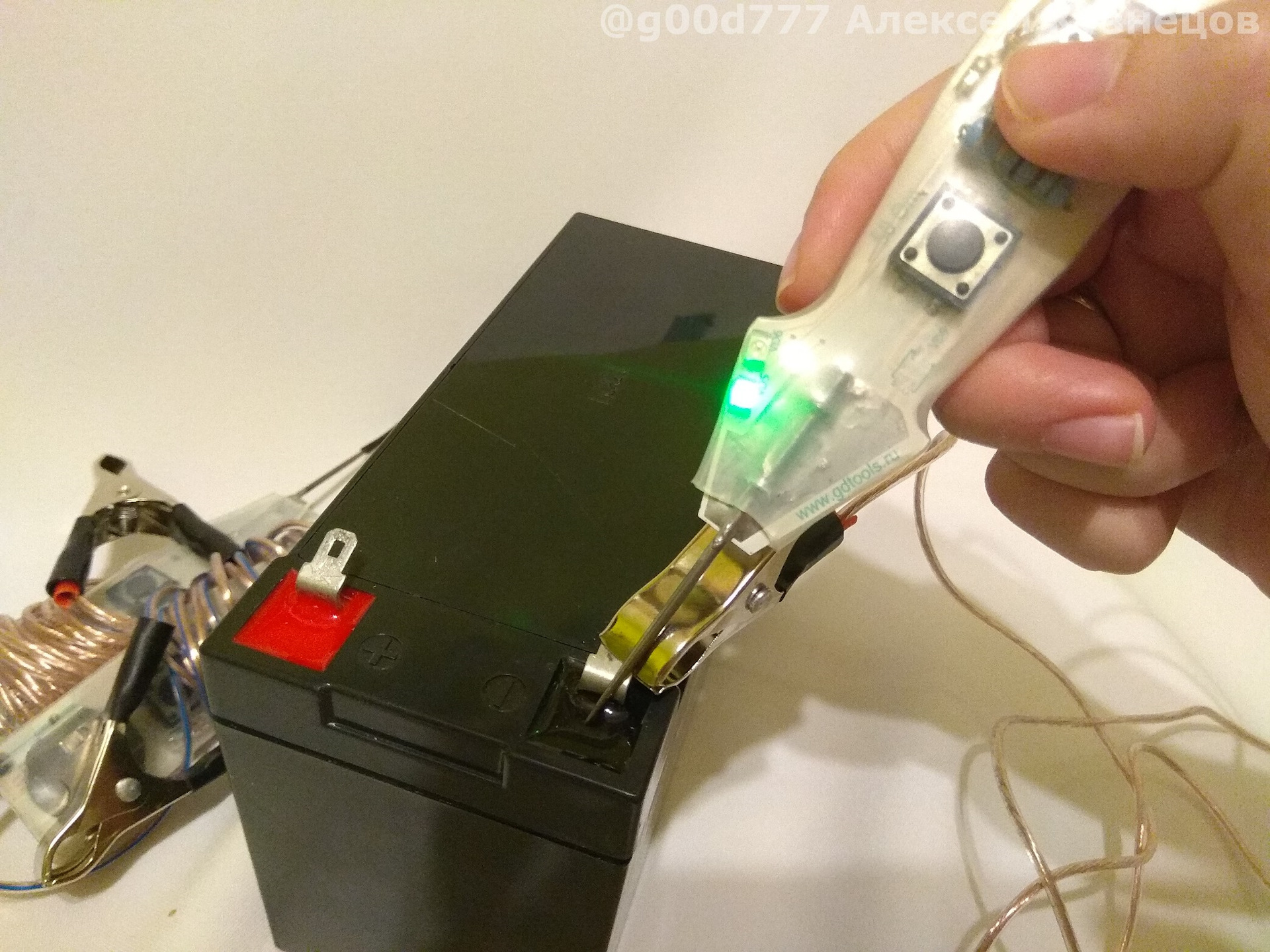 Сейчас просто дотронулся до клеммы "+"