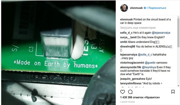 Да заметьте… что на плате Маск написал "Сделано людьми с планеты Земля"… Без привязки к стране, национальности, компании, корпорации, конкретным людям и т.п.