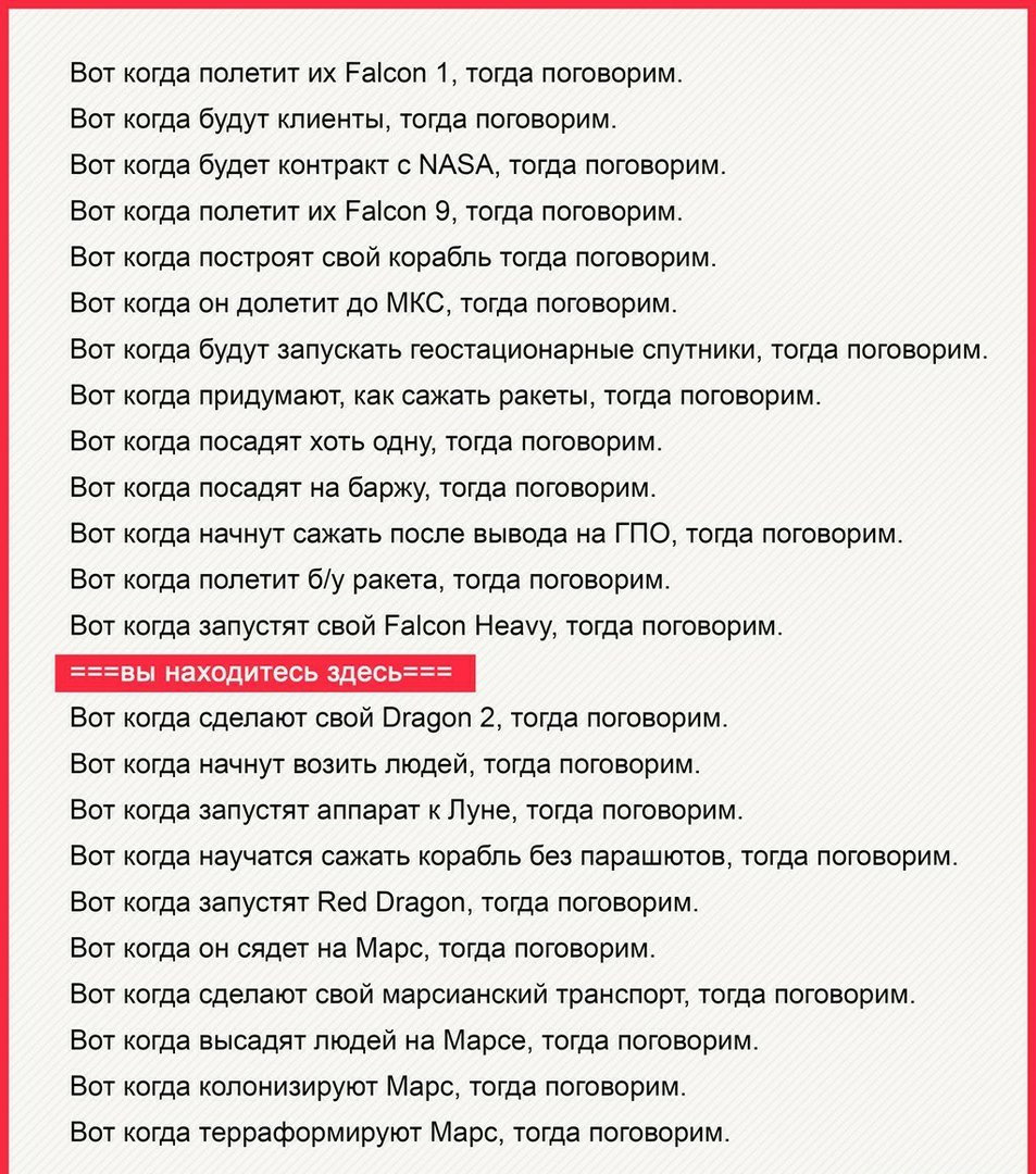 -Илон маск дибил зачем ты запустил машину в космос, там же нет дорог?