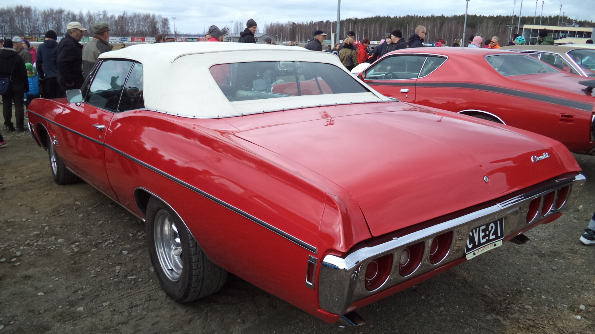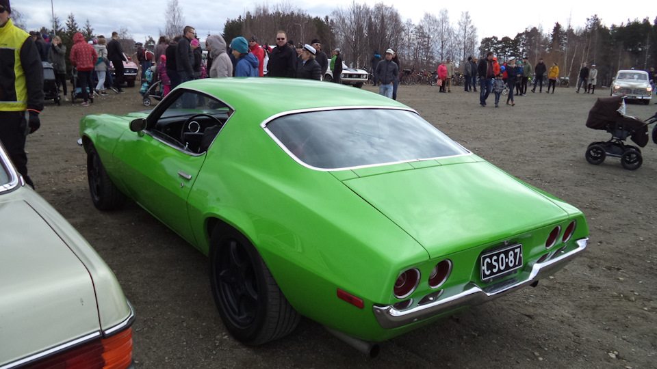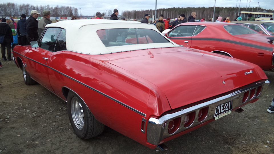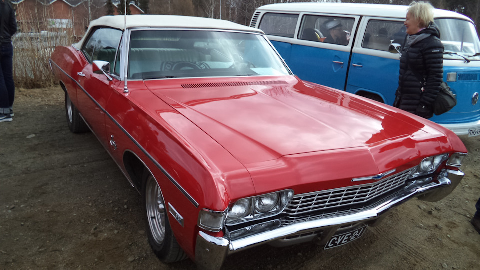 Американские автомобили на ретро слёте 1 мая в городе Joensuu (Финляндия) на местном стадионе Joensuu Areena.
