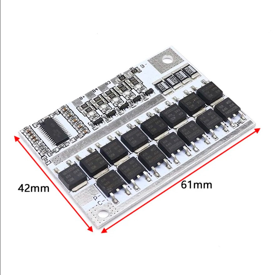 В феврале 2018 пришли все с одинаковым зарядом 3.23 В в каждой банке. Все 4 аккумулятора обмотал изолентой и последовательно соединил латунными пластинами. Подключил плату балансировки для LiFePo4 (32810584722). Подзарядил IMAX-ом до общего напряжения 13.6 В (предельное напряжение заряда для лиферов 14,6 В). После часа отстоя вольтметр показал 13.4 В. Вес батареи получился 1170 гр. Размер: 142х65х67 мм.