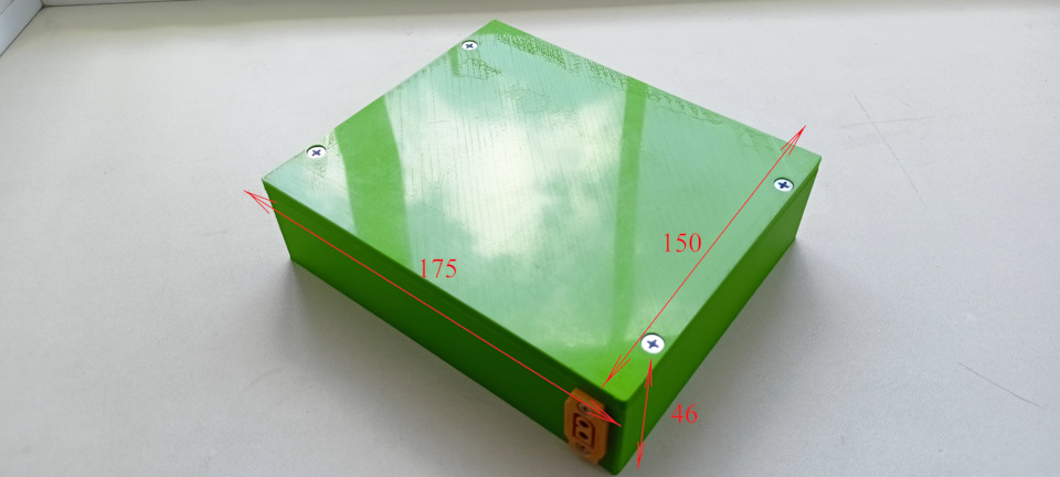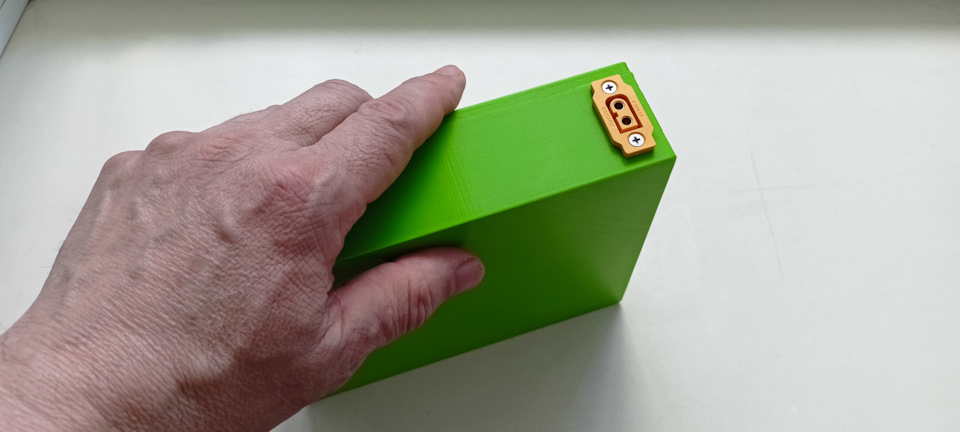 Для LiFePO4 батареи разработал и отпечатал на 3D принтере герметичный корпус с полостью под плату балансировки и оборудовал разъемами зарядки и питания потребителей.