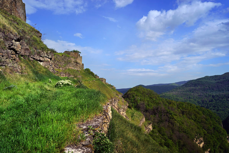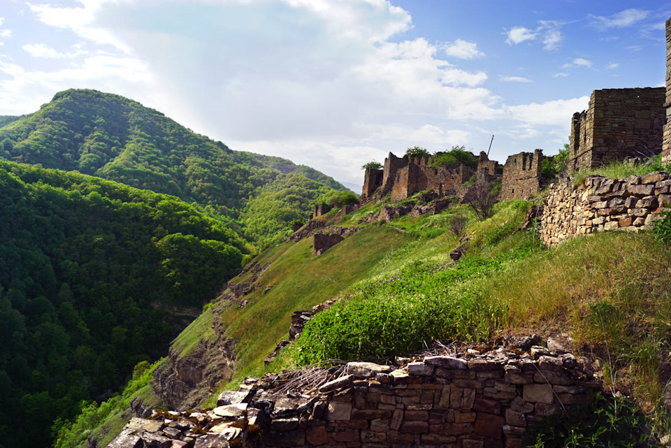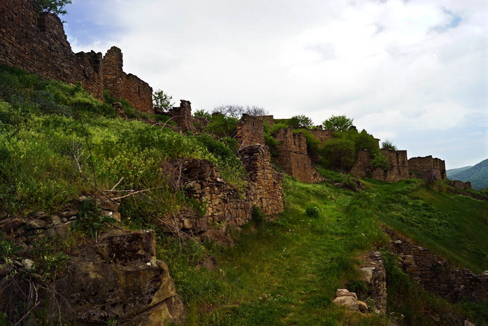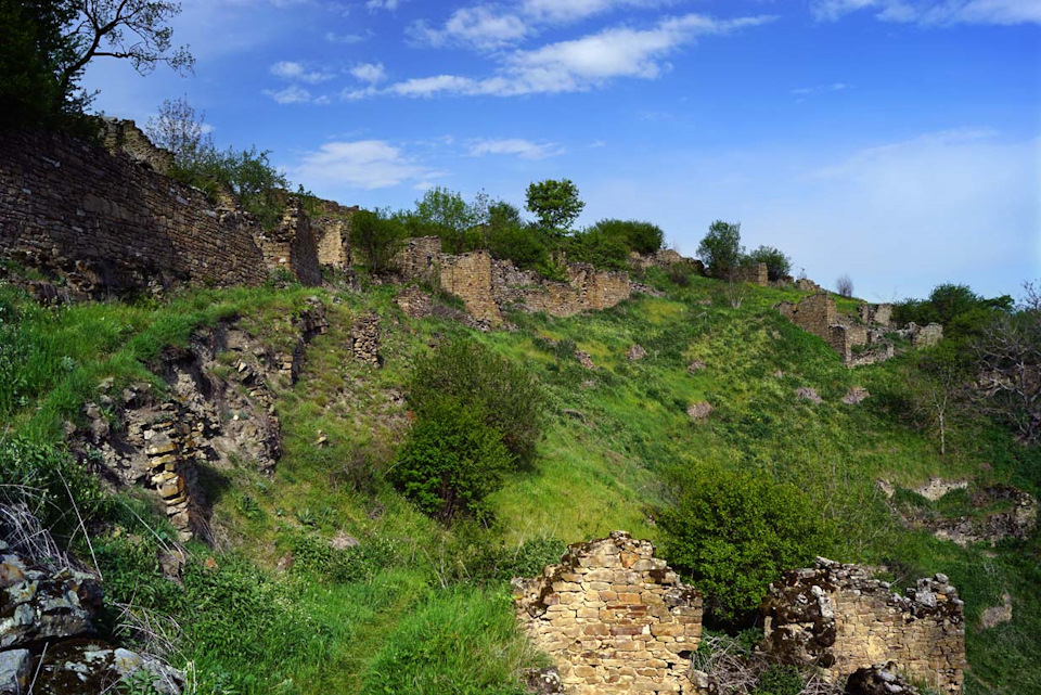 Внутри – остатки построек, тропинки «улиц», действующая мечеть… Вокруг открывается вид на вершины гор, лежащих где-то внизу. Тихо-тихо, только трещание кузнечиков в траве да птичьи переливы на деревьях.