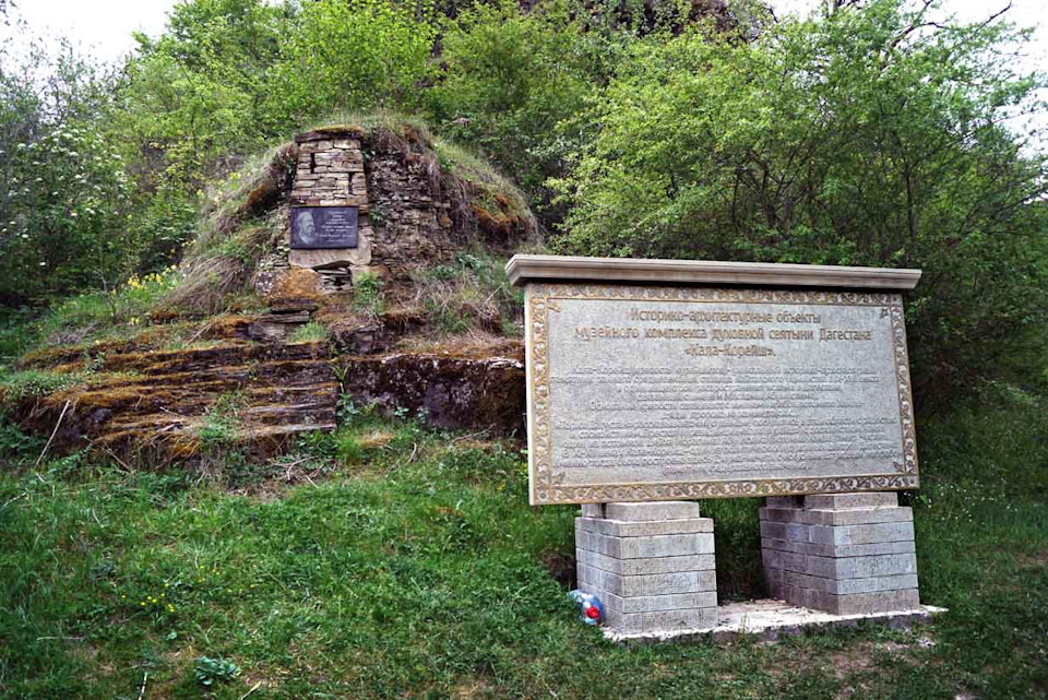 Дорога закончилась небольшим лужком с аккуратной бетонной табличкой о том, что мы достигли музейного комплекса духовной святыни Дагестана «Кала-Корейш». Лена впервые за четыре километра выдохнула, и мы ступили на тропу.