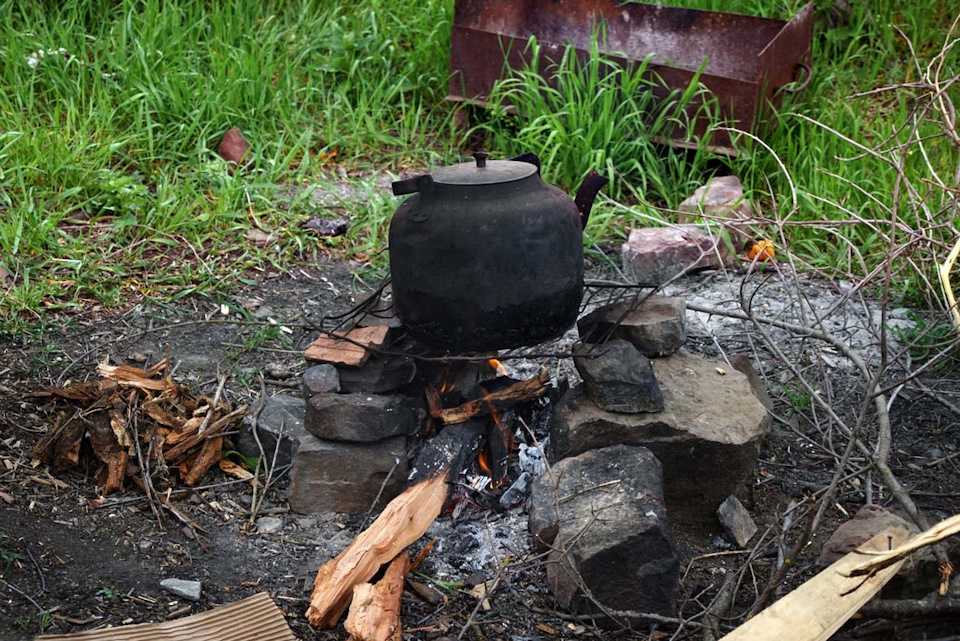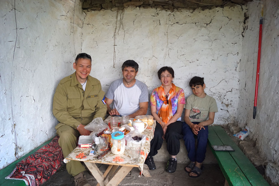 Нас окружили. Усадили за стол, из огромного закопчённого чайника налили кипятка и заварили чаю. От всяких конфет, пироженок, сухофруктов на столе рябило в глазах. «Садитесь, гости дорогие, угощайтесь, устали с дороги, небось!»