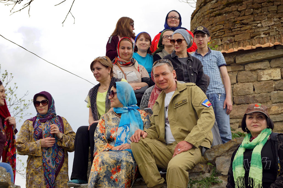 После того, как нас напоили и накормили, женщины принялись с нами фотографироваться. Меня обступили со всех сторон, а Лену укутали в свои разноцветные платки. Чтобы не отсвечивала. Они, как потом выяснилось, местные, из Махачкалы, но тоже путешествуют.