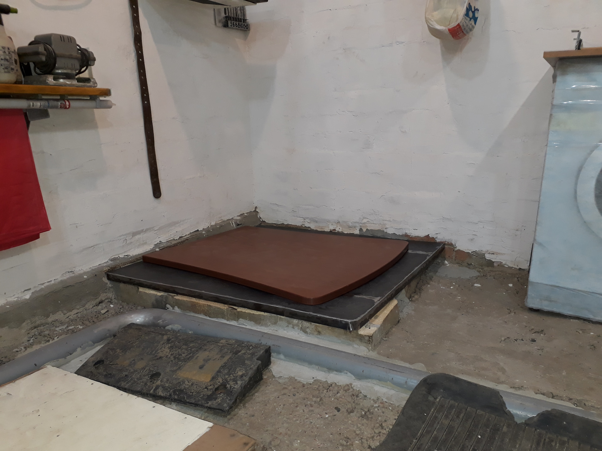 Кирпичи ниже рамки не ровнял, хочу все похоронить в стяжку вместе с трубами на полу.