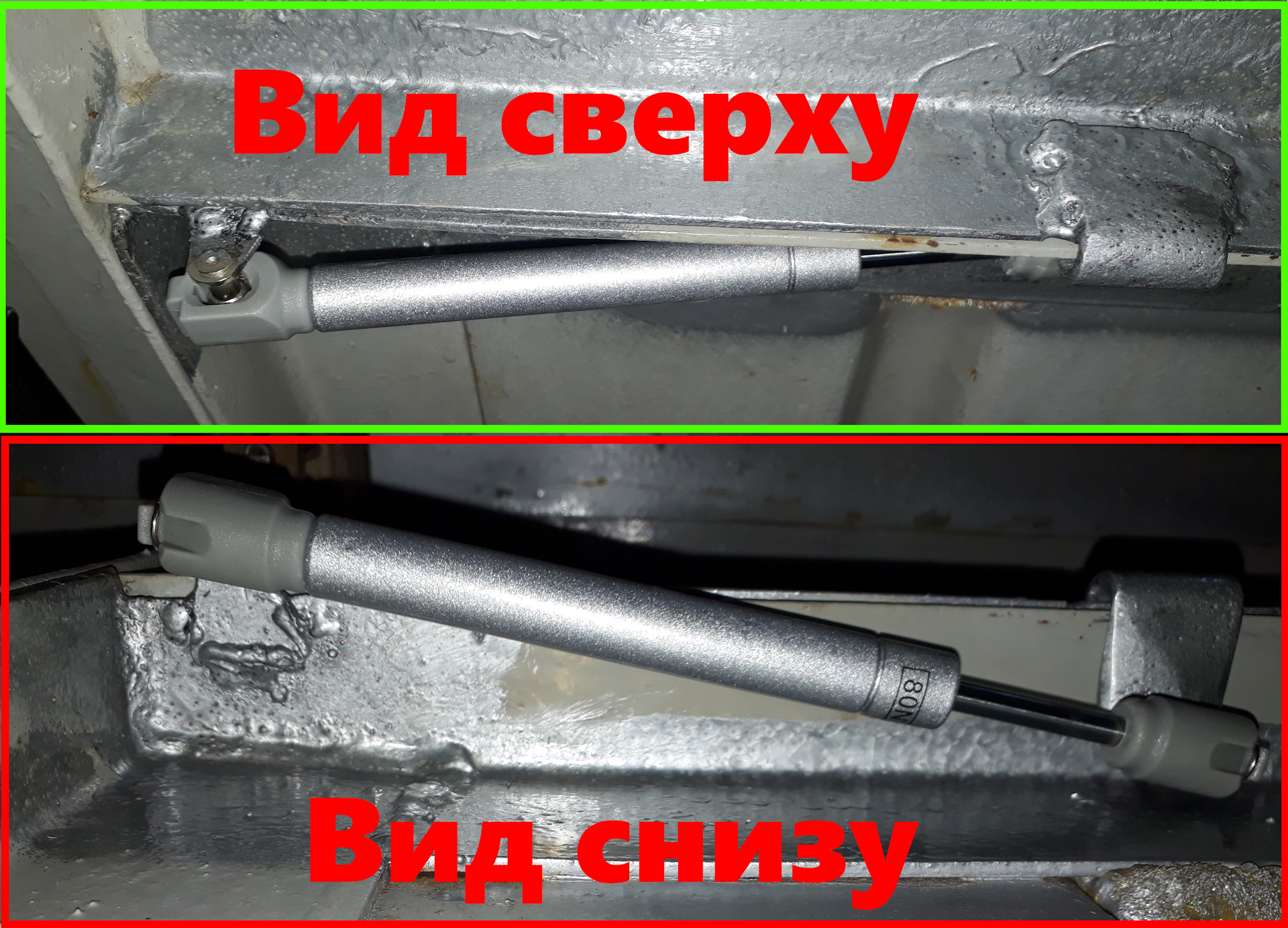 Хотя на самом деле эти газовые упоры — мебельные, "комнатные", предназначенные для "кухонных дверок" ( у нас они стоят от 150-250руб., в зависимости "кг" нагрузки) и вряд ли выдержат холода и силовые гаражные нагрузки.