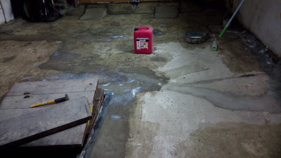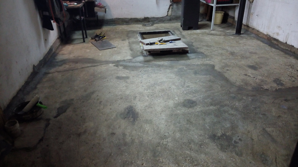 Изначально полы были из доски 50ки поверх бетона. Но так гараж был фактически заброшен, и протекала крыша в одном месте, частично доска подгнила.