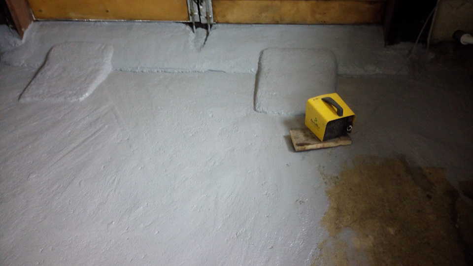 Так как пол бетонный был черновой, пришлось заделать раствором некоторые изъяны.