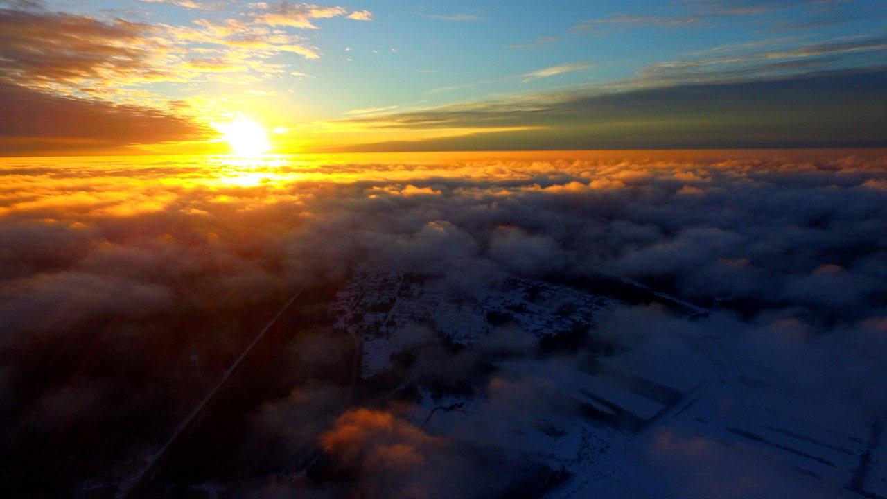 Солнце зимой видим только с квадрокоптера. Когда над облачностью летим. Хоть так…)