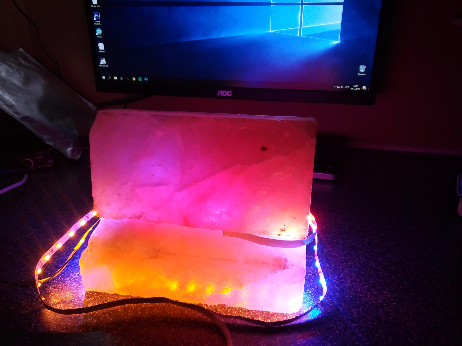По стоимости данного камина, конкретно я потратил не больше 1000рублей, но это конечно по тому, что я не считал то, что у меня уже было, это блоки питания, клей, стержни для клеевого пистолета, естественно коробки, детали для звукового оформления. Посчитал ардуино нано 150 руб (алиэкспресс), адресная лента 270 рублей (алиэкспресс), кирпич гималайской соль 300 рублей, полметра красной светодиодной ленты 100 рублей, пластиковый забор 50 рублей (ашан по акции) и 100 рублей рулон обоев (самые дешевые, бумажные).