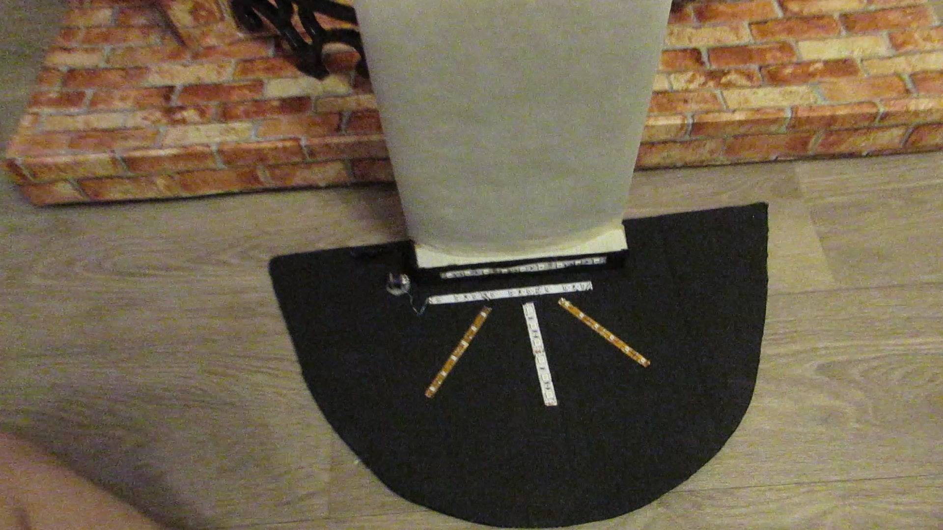 Основу решили выкрасить в черный цвет. Оградку для очага сделал из секции пластикового, декоративного, садового заборчика купленную в ашане за 50 рублей. Я ее распилил вдоль, пополам и нагревая горелкой добился нужного радиуса, после чего вклеил в камин с помощью клеевого пистолета.