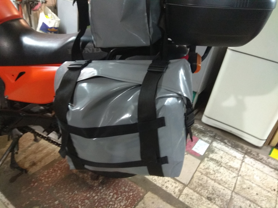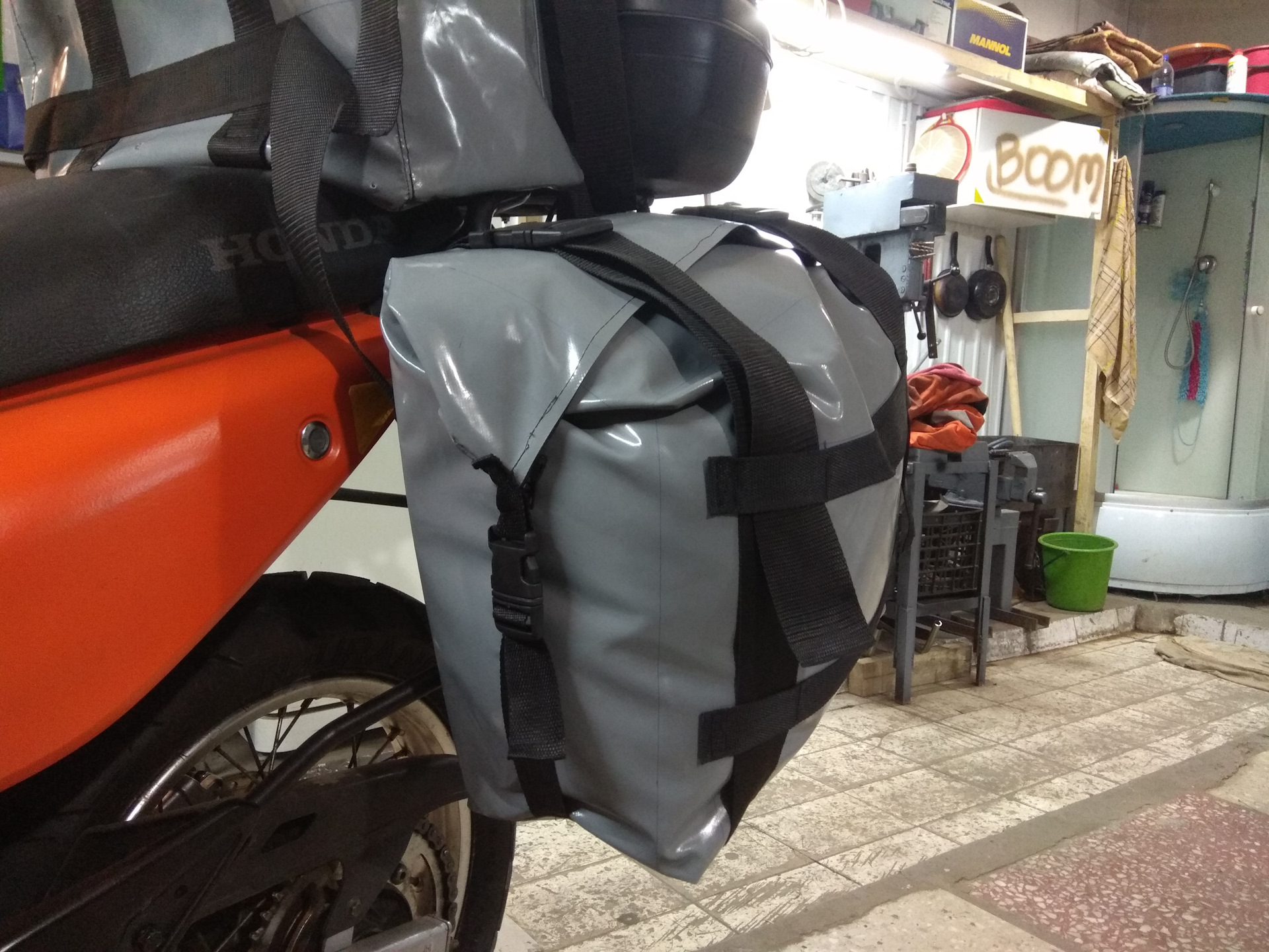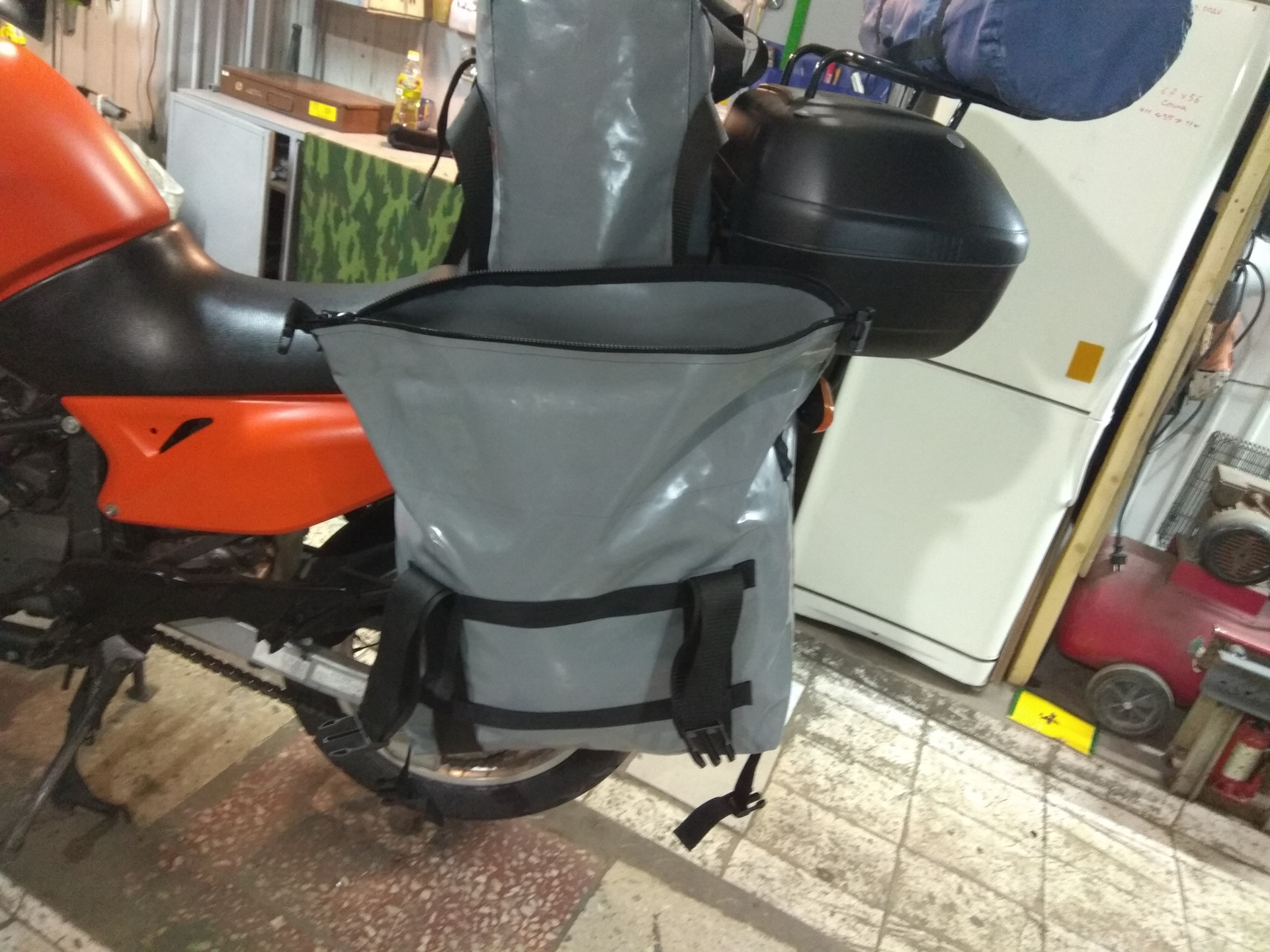 Бюджетно можно закустарить сумки по типу гермомешков. Все швы прошиты а не проклеены. Но думаю для мото не принципиально. Так как плавать на нем не собираюсь. А от дождя самый раз будет .